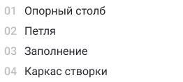Изделия выполняют из каркаса, столбов, и наполняют створки заказанным заказчиком материалом. Каркас изготовлен из трубы прямоугольной или квадратной. Для столбов подходит профиль 100х100 мм или 80х80 мм.